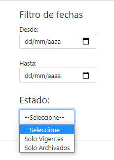 Filtro de fechas: Busca el proceso entre un rango de fechas de reparto determinado.